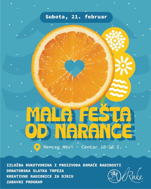 Јубиларна, 10. Мала фешта од наранче, у организацији НВУ Руке, а у оквиру програма 57. Празника мимозе, биће одржана у суботу, 21. фебруара, у Његошевој улици, од 10 до 16 сати.