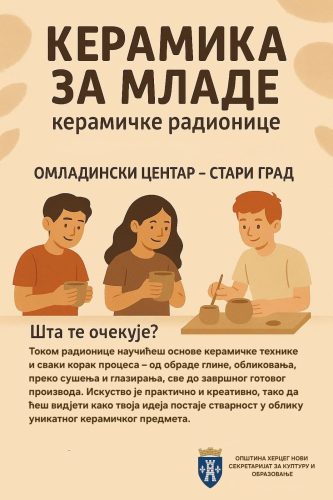 Још увијек су отворене и пријаве за радионицу израде керамике за младе, намијењену свим заинтересованим креативцима, без обзира на претходно искуство.