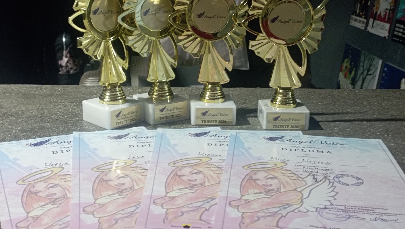 Солисткиње дјечијег хора Цвркутићи Лана Кишић, Марија Ерцеговић, Мартина Милинић (учеснице у групи од 16 такмичара у својој категорији) и Миња Матковић (теен аге група од 20 такмичара), освојиле су прва мјеста на међународном фестивалу у Трсту „Ангел воице 2026“.