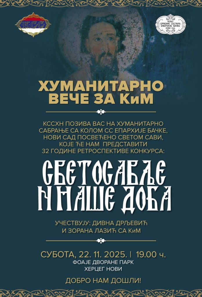 Поводом оснивања Кола српских сестара у Грачаници и Доњој Брњици, сестринство у Херцег Новом, у сарадњи са сестрама из Бачке, уприличиће хуманитарно вече под називом „Светосавље и наше доба“ сутра (субота, 22. новембар) у 19 сати.