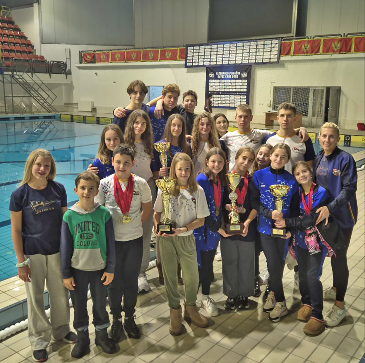 На Зимском првенству Црне Горе, одржаном током викенда на базену Спортског центра у Никшићу пливачи Јадрана освојили су 96 медаља, односно 49 златних, 23 сребрене и 24 бронзане, што је екипи донијело другу позицију на основу бодовања освојених медаља.