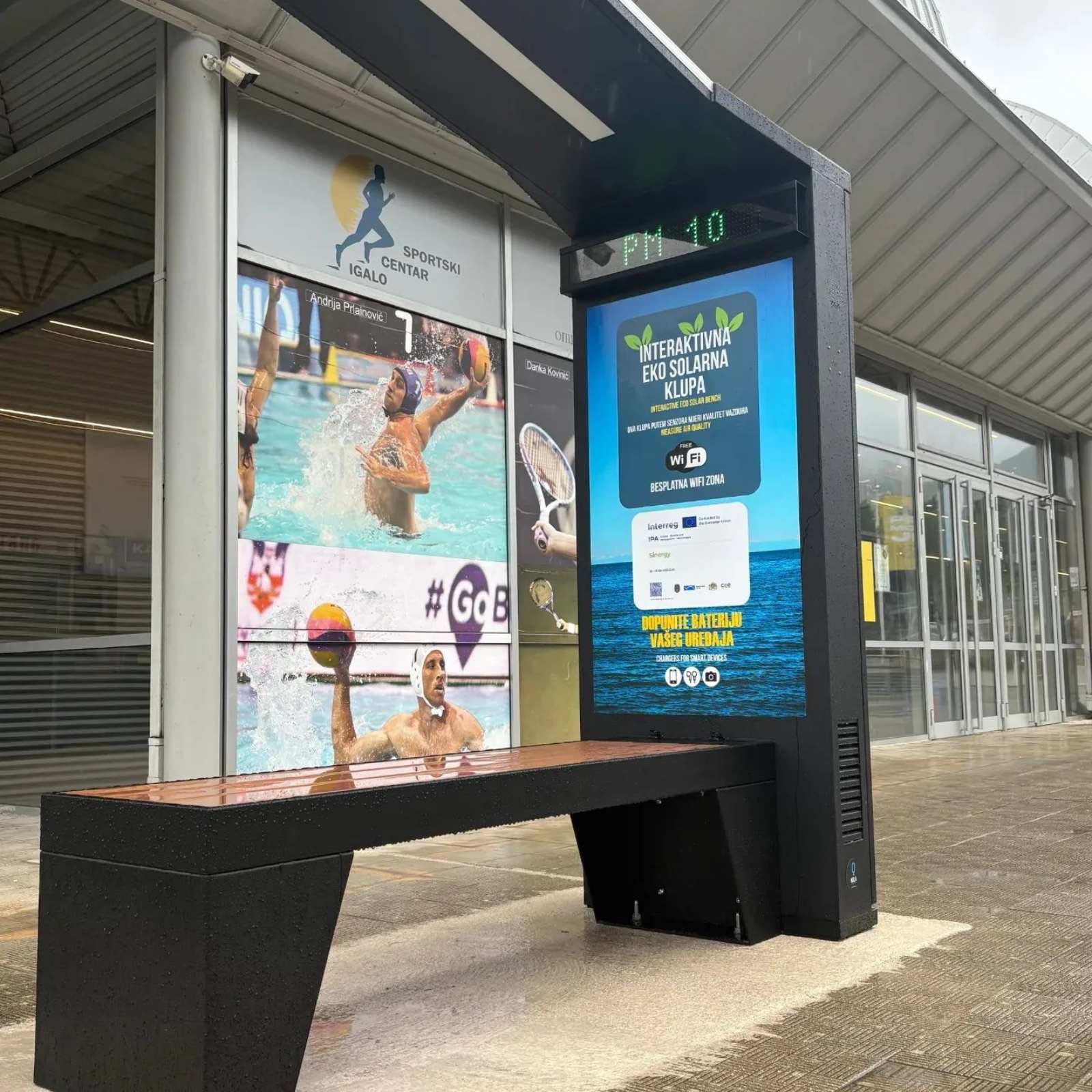 Постављена је и интерактивна еко-паметна клупа, опремљена соларним панелима, пуњачима за мобилне уређаје, ЛЕД екраном и метеоролошком станицом.