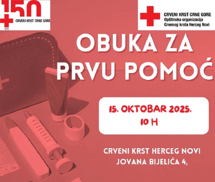 Нова обука у пружању прве помоћи, биће одржана сутра у просторијама Општинске организације Црвеног крста Херцег Нови.