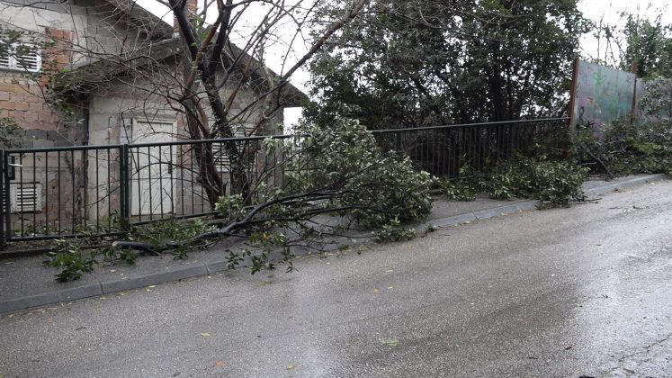 Услијед удара вјетра, који је данас у два наврата између 12.50 и 13.00 сати достизао јачину од око 60 km/h, оборeно је неколико стабала на подручју општине, а са зграде у Улици Саве Ковачевића отпао је дио фасаде.