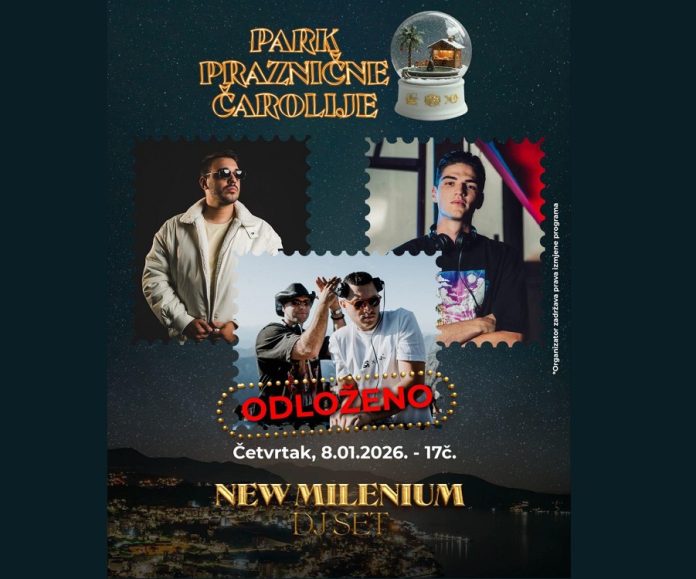Забава Одгођен музички догађај у Парку празничне чаролије јануар 8, 2026 FacebookTwitterPinterestWhatsApp Због најављених падавина одгођен је музички догађај планиран за 08. јануар у „Парку празничне чаролије“ – Парк Бока, саопштено је из Туристичке организације. „Неw Милениум“ наступиће у новом термину који ће благовремено бити најављен.