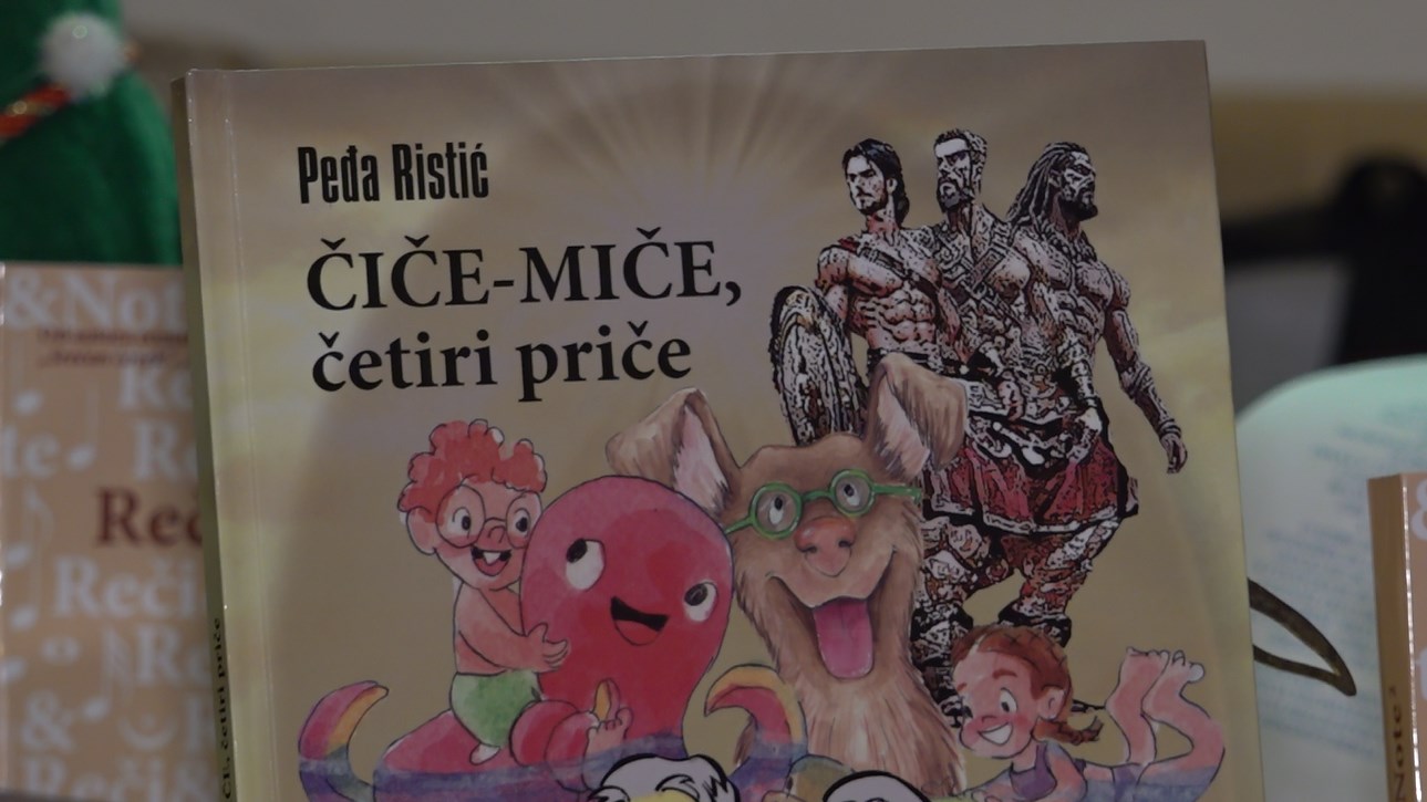 -Једна прича се догађа у Херцег Новом. Две девојчице су са баком и деком дошле на летовање, не знају да пливају, а бака и дека су стари, троми, ал уче децу да пливају, друже се са делфином Фићом, са хобом Бобом и тако даље. То је једна од четири приче у збирци „Чиче миче“, казао је Ристић.
