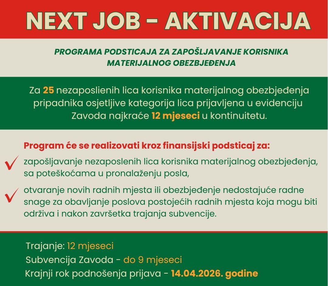 Завод за запошљавање Црне Горе расписује Конкурс за реализацију Програма подстицаја за запошљавање жена “Next job – она”.