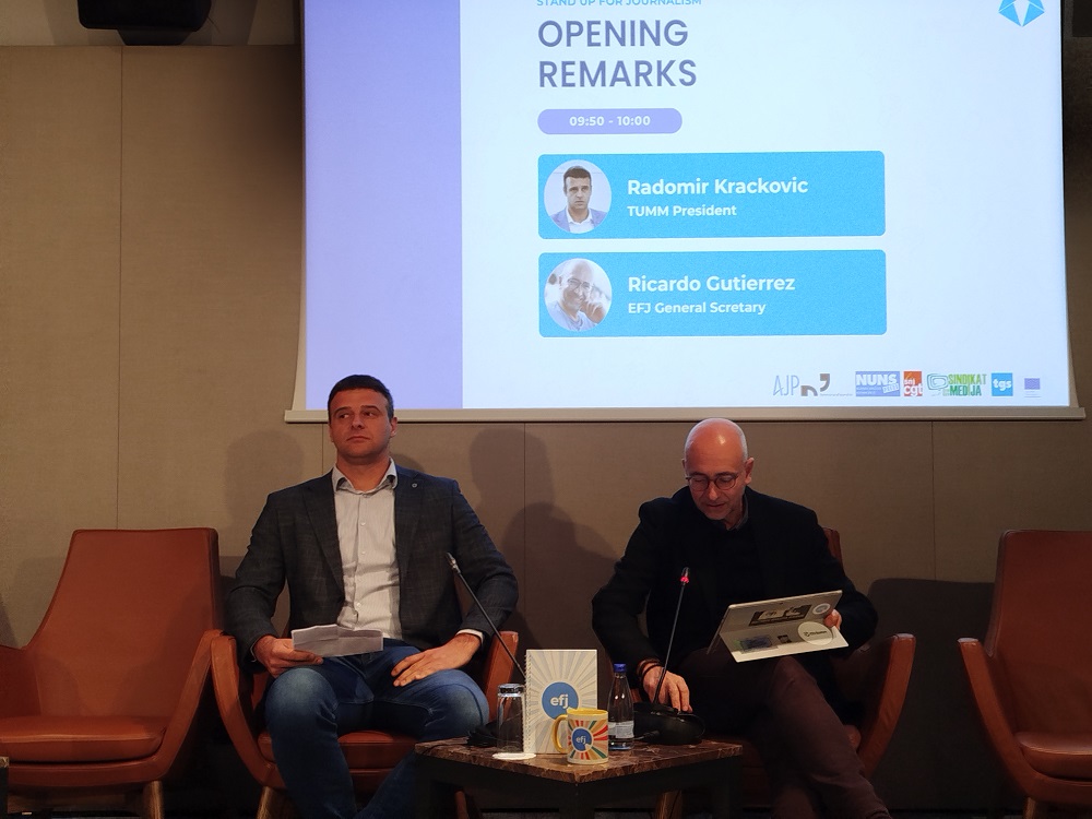 -У Црној Гори, просјечан медијски радник или радница једног медија данас је потплаћен, преоптерећен и пречесто незаштићен. Према истраживању Синдиката медија и Мисије ОЕБС-а, троје од четворо медијских радника и радница примају зараду која је мања од државног просјека. Истовремено, многи од њих раде прековремено, без адекватне компензације, суочавајући се са исцрпљеношћу, сагоријевањем и озбиљним посљедицама по ментално здравље, истакао је Крачковић.