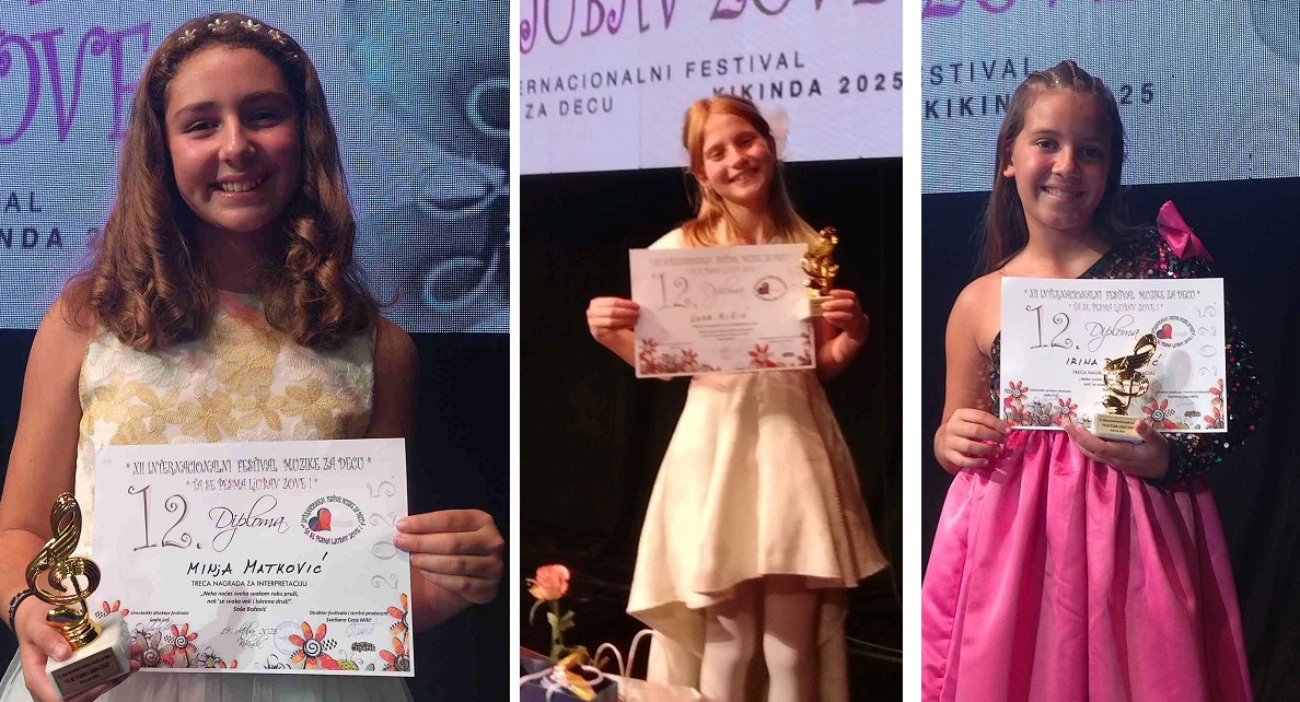 На фестивалу у Кикинди Ирина Павловић, Лана Кишић и Миња Матковић освојиле се треће награде, у својима категоријама.