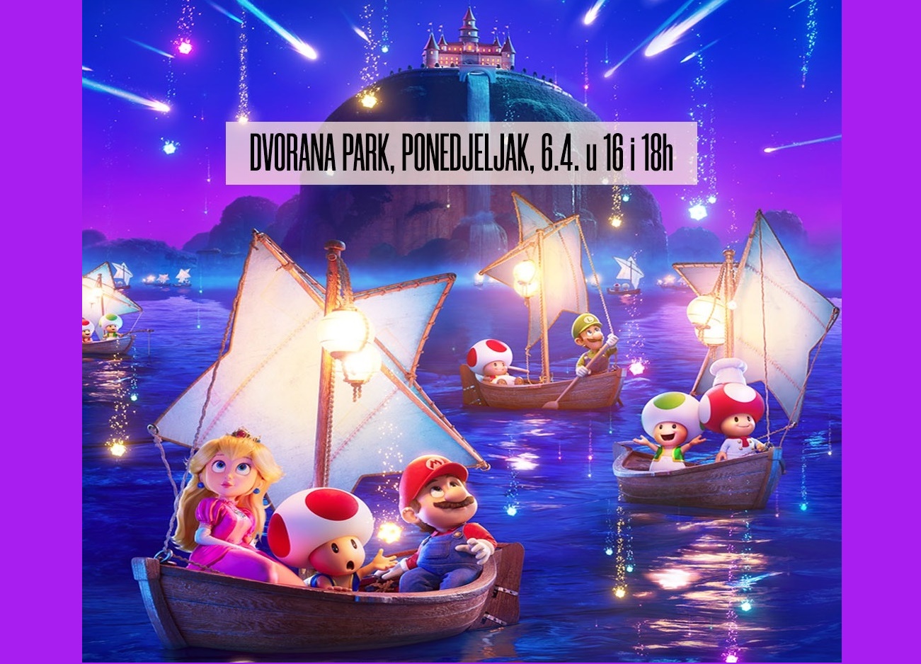 “Супер Марио – Галактички филм“ можете погледати у 16.00 и 18.00 сати у дворани „Парк“, а цијена улазнице је три еура.